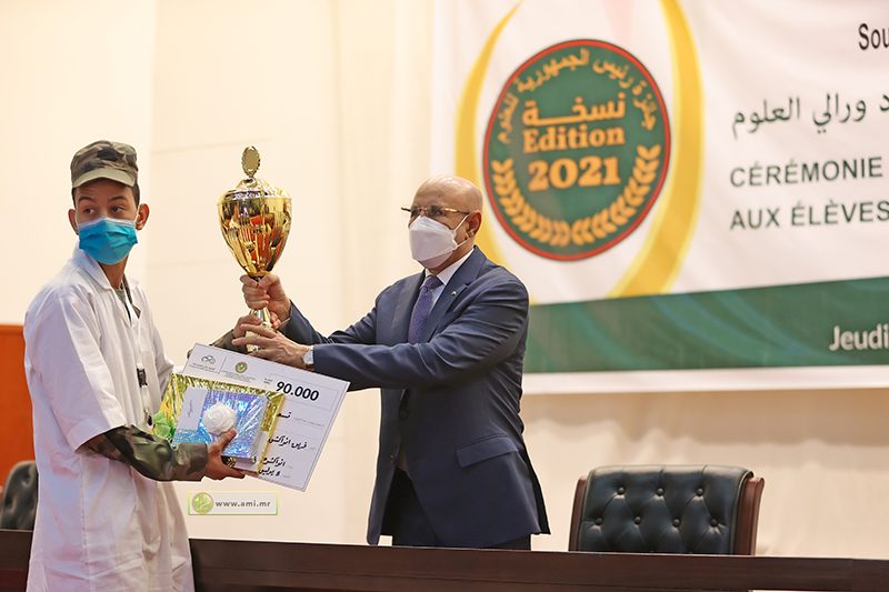 أشرف فخامة رئيس الجمهورية السيد محمد ولد الشيخ الغزواني صباح اليوم الخميس بالمركز الدولي للمؤتمرات في انواكشوط على حفل تسليم جائزة رئيس الجمهورية للعلوم، للتلاميذ المتفوقين في المسابقة الوطنية “الأولمبياد ورالي العلوم 2021″، لتشجيع المتوفقين في المواد العلمية وتحفيز الإبداع والتميز في صفوف النشء.