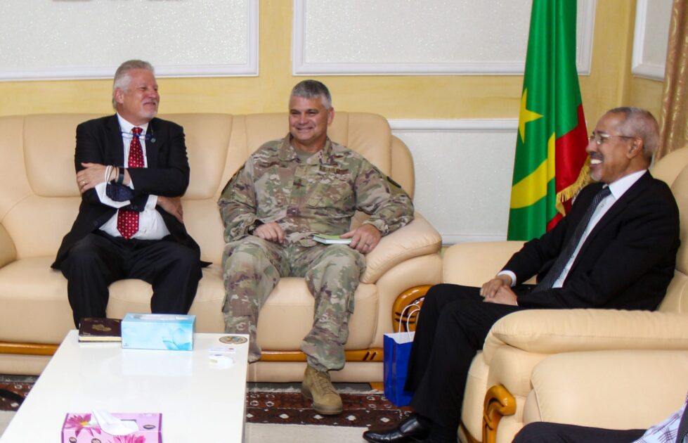 استقبل معالي وزير الدفاع الوطني السيد حننه ولد سيدي صباح اليوم الخميس في مكتبه بمقر الوزارة في انواكشوط بعثة من القيادة الأمريكية في إفريقيا “آفريكوم” تزور بلادنا حاليا بقيادة السفير آندرو يانغ، نائب قائد “آفريكوم” المكلف بالتعاون المدني العسكري وعضوية الجنرال كيرك اسميث، نائب قائد العمليات بالقيادة.