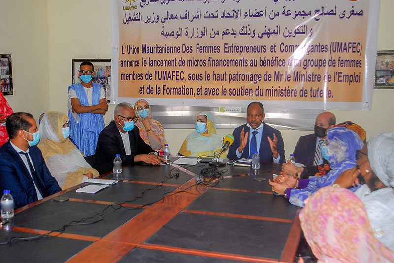 أشرف معالي وزير التشغيل والتكوين المهني السيد الطالب ولد سيد احمد، اليوم الأربعاء بمقر الاتحاد الموريتاني للنساء المقاولات والتاجرات في نواكشوط، على انطلاق تمويل مشاريع صغرى لصالح 37 من أعضاء هذا الاتحاد.