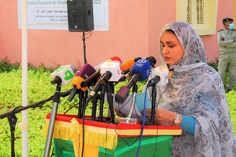أشرفت معالي وزيرة العمل الاجتماعي والطفولة والأسرة السيدة الناها بنت هارون ولد الشيخ سيديا رفقة مفوض حقوق الإنسان والعمل الإنساني والعلاقات مع المجتمع المدني الشيخ أحمدو ولد أحمد سالم ولد سيدي، اليوم الخميس في الروضة التطبيقية للمدرسة الوطنية للعمل الاجتماعي بعرفات على حفل افتتاح العام الدراسي للتعليم ما قبل المدرسي 2021-2022.