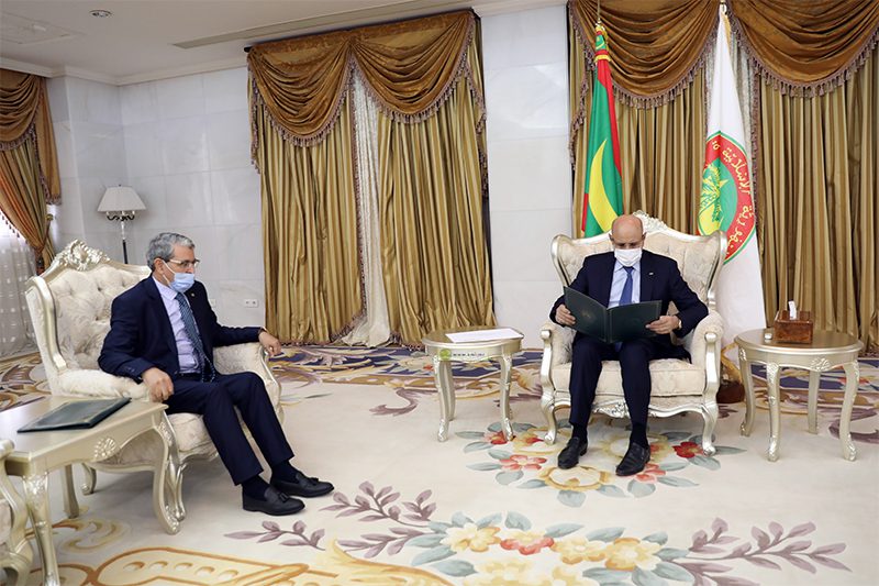 وقال السفير في تصريح للوكالة الموريتانية للأنباء، عقب اللقاء، إنه نقل لفخامة رئيس الجمهورية رسالة خطية من أخيه عبد المجيد تبون وتحياته الخالصة.