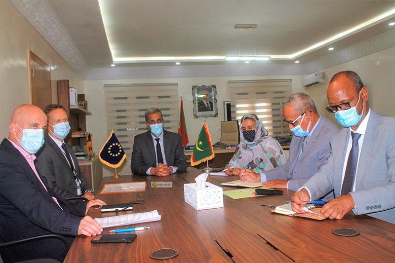 عقد معالى وزير الصيد والاقتصاد البحري السيد أدي ولد الزين صباح اليوم الثلاثاء بمكتبه بنواكشوط لقاء مع سعادة السفير رئيس بعثة الاتحاد الأوروبي فى موريتانيا، السيد جونس غويليم، تركزت حول علاقات التعاون بين موريتانيا والاتحاد الأوروبي خاصة فى مجال الصيد والاقتصاد البحري.