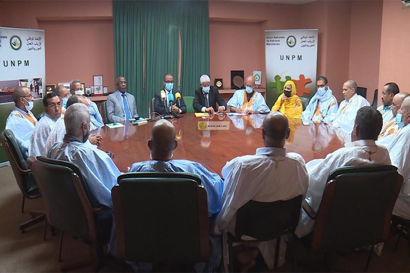 وجرى اللقاء بحضور الأمين العام للاتحاد الوطني لأرباب العمل الموريتانيين السيد الكوري ولد عبد المولى والأمين العام لاتحادية التجارة السيد لفضل ولد عبد الودود.