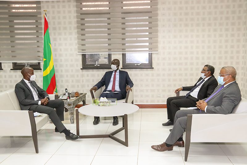 وجرى اللقاء بحضور الأمين العام للوزارة السيد محمد المصطفى الملقب إدوم ولد عبدي ولد أجيد، والسيد عباس سلا، المدير العام للسياسات واستراتجيات التنمية بالوزارة.