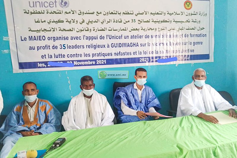 أشرف مستشار والي گيديماغه المكلف بالشؤون الادارية و القانونية السيد محمد لمين ولد الحسين اليوم الخميس في سيلبابي، على افتتاح ورشة لتحسيس و تكوين 35 من قادة الرأي الديني في گيديماغه حول العنف المبني على النوع و قانون الصحة الانجابية و محاربة بعض الممارسات الضارة.