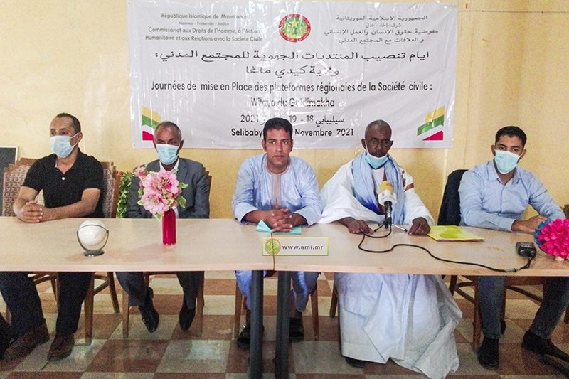 أشرف مستشار والي گيديماغه المكلف بالشؤون الاقتصادية والتنمية المحلية السيد سيدي محمد ولد عبد الرحمن اليوم الجمعة في سيلبابي على فعاليات بدء تنصيب اللجان الجهوية لمنظمات المجتمع المدني على مستوى ولاية گيديماغه.