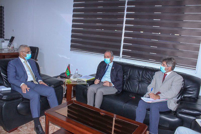وجرى اللقاء بحضورالأمين العام للوزارة، السيد أمادي ولد الطالب، ومدير المياه في الوزارة السيد الأفضل ولد الداده، ومدير متابعة ومراقبة المشاريع السيد محمد ولد جدو.