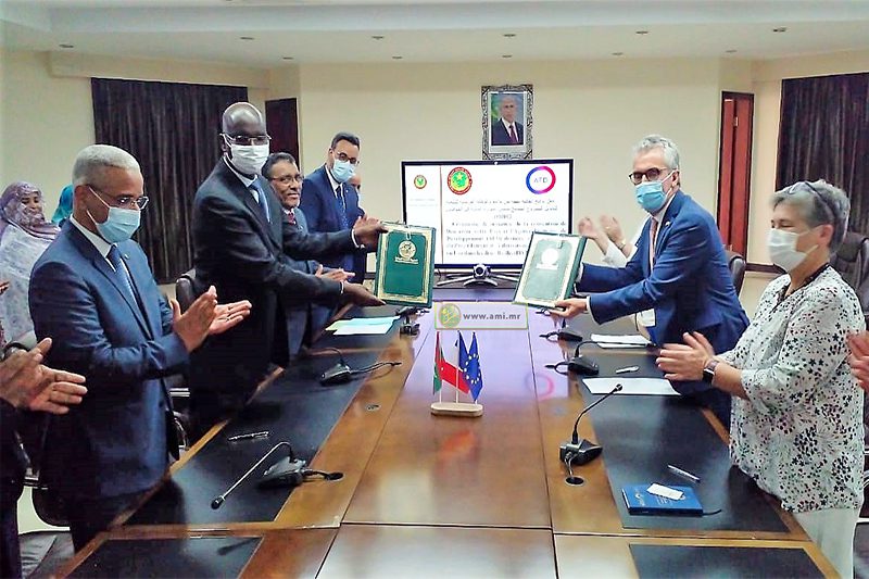 وقع معالي وزير الشؤون الاقتصادية وترقية القطاعات الإنتاجية، السيد أوسمان مامودو كان، اليوم الاثنين في نواكشوط، بحضور معالي وزير المياه و الصرف الصحي، السيد محمد الحسن ولد بوخريص، مع سفير فرنسا المعتمد لدى بلادنا، سعادة السيد روبير مولي، على اتفاقية منحة لتمويل المشروع المندمج لتثمين الموارد المائية في الحوضين.