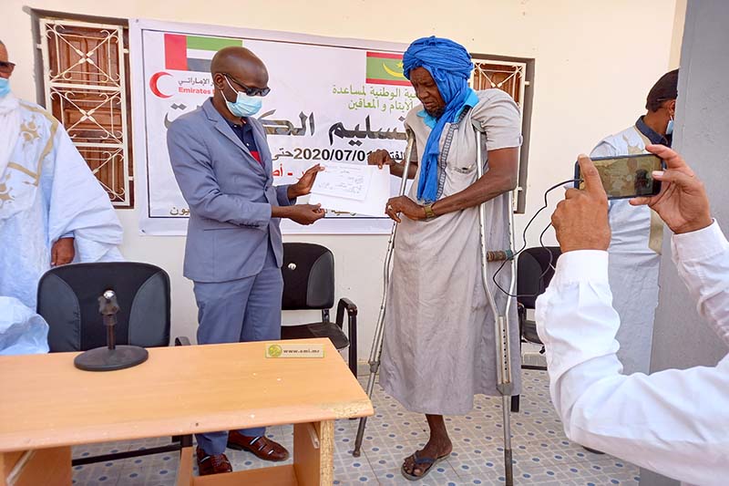 و بدوره أكد رئيس الجمعية الوطنية لمساعدة الايتام و ذوي الاعاقة السيد سالم محمد المصطفى على مواصلة هذه الجهود الرامية إلى تخفيف أعباء الحياة و مساعدة المحتاجين في كل المجالات شاكرا الجهات الداعمة و على وجه الخصوص دولة الامارات العربية المتحدة و الهلال الاحمر الإماراتي على توفير الدعم و المؤازرة للفقراء و المحتاجين .