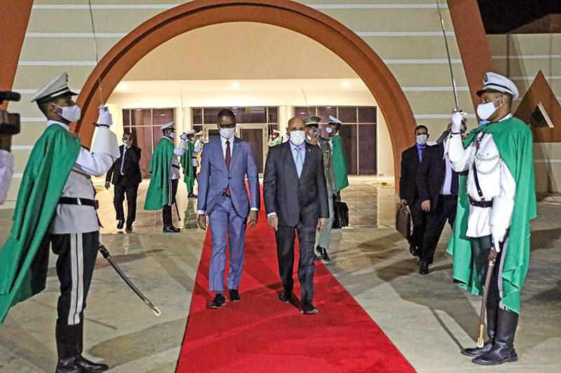وودع رئيس الجمهورية لدى مغادرته مطار نواكشوط الدولي أم التونسي من طرف معالي الوزير الأول السيد محمد ولد بلال مسعود والوزير الأمين العام لرئاسة الجمهورية ووزراء العدل والدفاع الوطني والداخلية واللامركزية وقائد الأركان الخاصة لرئيس الجمهورية والمديرة المساعدة لديوان رئيس الجمهورية ووالي نواكشوط الغربية ورئيسة جهة انواكشوط.
