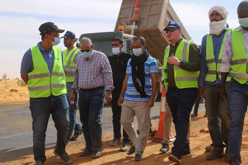 أدى معالي وزير التجهيز والنقل السيد محمدو احمدو امحيميد اليوم الاحد زيارة تفقد لبعض الورشات العاملة في المقطع الطرقي رقم 1 الرابط بين آجوير وبوتلميت من طريق الاك بوتلميت ، والمقطع الطرقي رقم 3 على طريق بوتلميت نواكشوط، حيث شاهد ميدانيا الأشغال الجارية لإنشاء طبقات الأساس والقاعدة الأسفلتية في هذه الورشات.