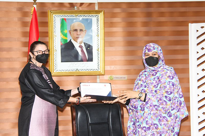 وسلمت الممثلة لمعالي الوزيرة شهادة تقدير لمورتانيا على مشاركتها في معرض فيتور 2021 بإسبانيا بوصف الجناح الموريتاني أكبر جناح إفريقي في المعرض وكان أكثر جناح زوارا نتيجة حسن التنظيم بإشراف المكتب الوطني للسياحة.