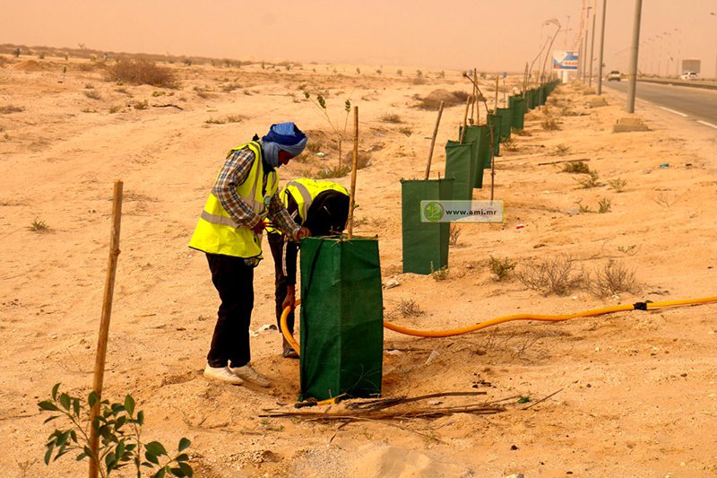 جهة نواكشوط تواصل حملة تشجير طريق المطار