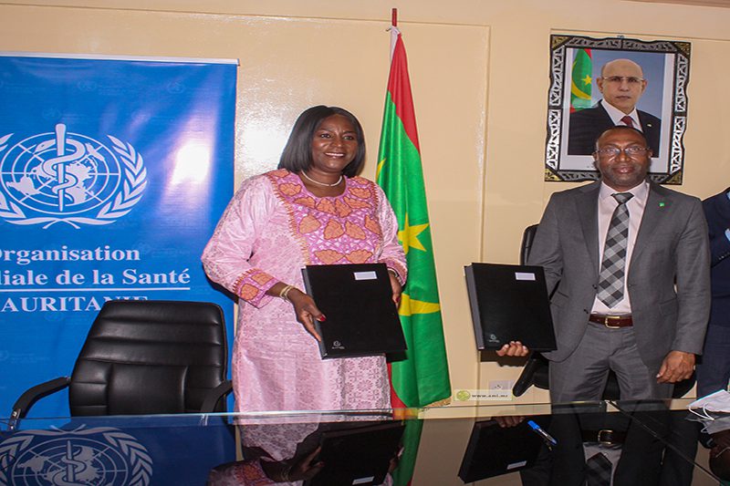 وقد وقع الإتفاقية عن الجانب الموريتاني معالي وزير الصحة السيد سيدي ولد الزحاف، بينما وقعتها عن المنظمة ممثلتها المقيمة في نواكشوط السيدة شارلوت انجاي.