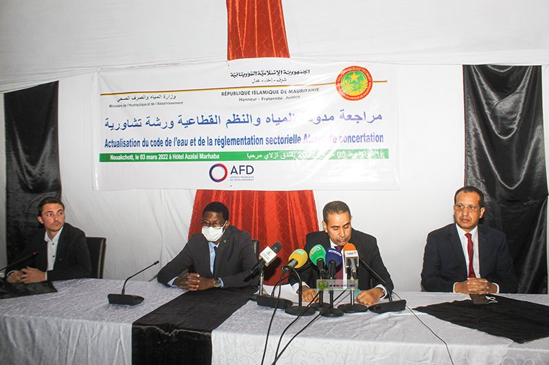بدأت اليوم الخميس في انواكشوط أعمال ورشة تشاورية لمراجعة مدونة المياه والنظم القطاعية، منظمة من طرف وزارة المياه والصرف الصحي بالتعاون مع الوكالة الفرنسية للتنمية.