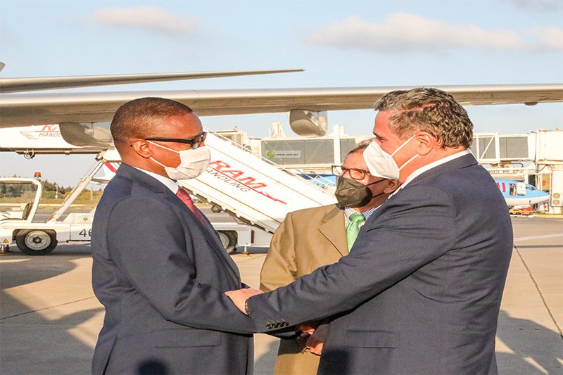 واستقبل معالي الوزير الأول لدى سلم الطائرة بمطار الرباط سلا، من طرف نظيره المغربي معالي السيد عزيز اخنوش رئيس الحكومة المغربية.