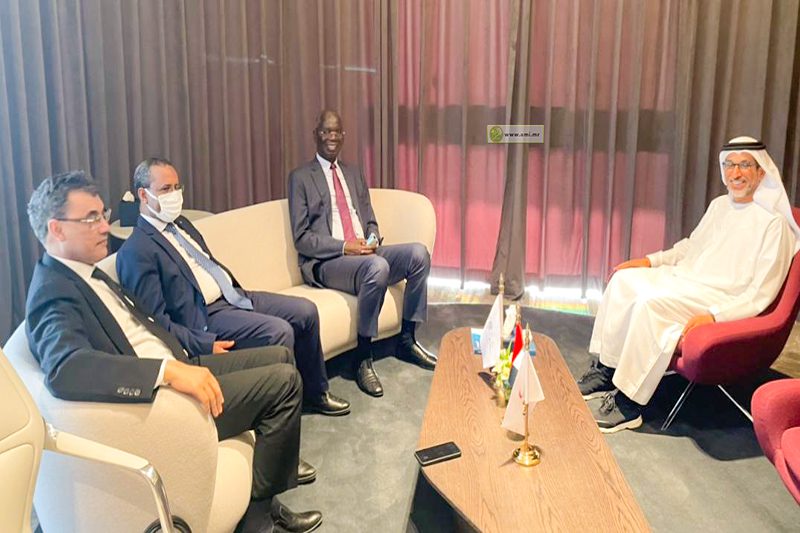 عقد معالي وزير الشؤون الاقتصادية وترقية القطاعات الإنتاجية السيد أوسمان مامودو كان رفقة معالي وزير التجهيز والنقل السيد محمدو ولد أحمدو ولد أمحيميد وسعادة سفير بلادنا في الإمارات العربية المتحدة السيد محمد أحمد سالم محمد راره،اليوم الخميس اجتماعا مع المدير العام لصندوق أبوظبي للتنمية الاقتصادية السيد محمد سيف السويدي.