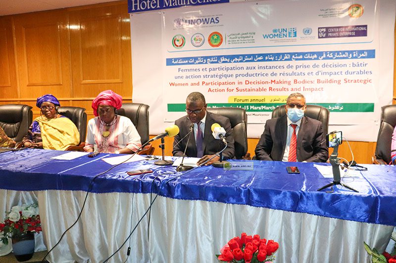 اختتمت أمس الثلاثاء بنواكشوط ، أعمال المنتدى السنوي للمرأة والمشاركة في هيئات صنع القرار، المنظم من طرف وزارة العمل الاجتماعي والطفولة والأسرة ومكتب الأمم المتحدة لغرب إفريقيا ودول الساحل وهيئات الأمم المتحدة العاملة في المنطقة تحت عنوان “مشاركة المرأة في صنع القرار: “بناء عمل استراتيجي يؤدي إلى نتائج وآثار مستدامة” .