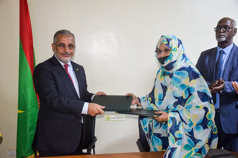 وقع معالي المندوب العام للتضامن الوطني ومكافحة الإقصاء (تآزر) السيد محمد عالي ولد سيدي محمد، والمديرة الوطنية لشبكة الصناديق الشعبية للادخار والقرض (كابك)، السيدة نبغوها بنت اتلاميد، صباح اليوم الخميس بمقر (تآزر) في انواكشوط على ابروتوكول شراكة لتمويل 2252 مشروعا في عموم بلديات الوطن.