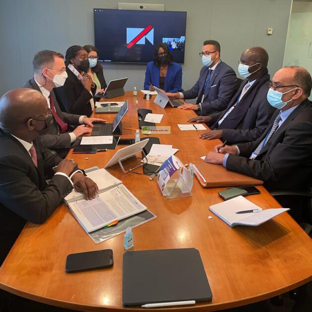 عقد معالي وزير الشؤون الاقتصادية وترقية القطاعات الإنتاجية السيد أوسمان مامودو كان رفقة وزير المالية السيد إسلمو ولد محمد أمبادي اليوم الخميس في واشنطن لقاء على هامش اجتماعات الربيع السنوية لمجموعة البنك وصندوق النقد الدوليين، لقاء مع نائب رئيس مؤسسة التمويل الدولية” IFC” المكلف بإفريقيا، السيد سريجيو بيمانتا، وكلا من المدير الإقليمي للمؤسسة المكلف بغرب ووسط إفريقيا، السيد عليون ميجا، والمديرة المكلفة بموريتانيا السيدة جوزيين كويندا، والسيدة كريستينا سانتوس، الممثلة المقيمة للبنك الدولي في موريتانيا.