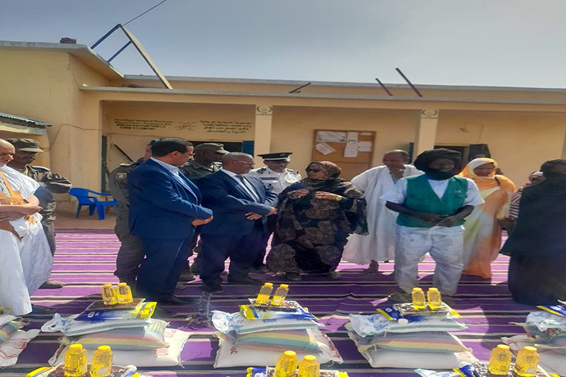 أشرف والي لعصابة السيد محمد ولد احمد مولود، اليوم الجمعة في كيفه على توزيع سلات غذائية، مقدمة من طرف نائبة جهة لعصابة السيدة زينب بنت سيدين.