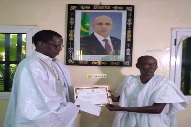 وقدم الوالي أولى الجوائز النقدية للفائز الأول السيد عبد السلام ولد اعمارة، الذي حصل على 75 نقطة، في حين حصلت السيدة ادويده بنت محمد على الجائزة الثانية، وحصلت ميمة بنت محمد المختار على الجائزة الثالثة بمعدل 66 نقطة، وحصل أحمد اعلي يرتع على الجائزة الرابعة بمعدل 60 نقطة، وحصلت السالكة بنت لمام على الجائزة الخامسة بمعدل 47 نقطة.