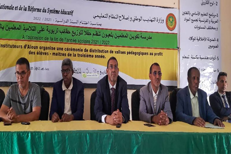 أشرف والي الحوض الغربي السيد المختار ولد حنده اليوم الثلاثاء بمباني مدرسة تكوين المعلمين في لعيون على حفل توزيع حقائب تربوية على التلاميذ المعلمين في القسم الثالث و النهائي بالمدرسة.