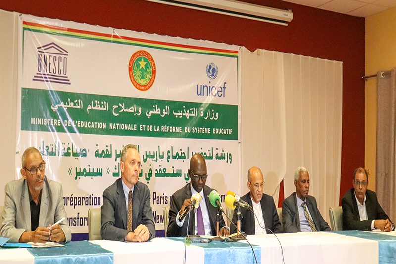 نظمت وزارة التهذيب الوطني وإصلاح النظام التعليمي، اليوم الثلاثاء في انواكشوط، ورشة تحضيرية لاجتماع باريس استعدادا لقمة صياغة التعليم التي ستعقد بنيويورك في سبتمبر المقبل، وذلك بالتعاون مع اليونسيف واليونسكو.
