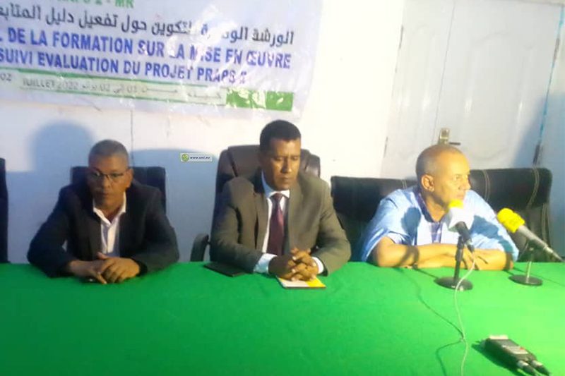 وفي كلمة بالمناسبة اوضح والي ولاية لعصابه المساعد السيد محمد ولد عبد الله ولد الشيخ سيديا أن المتابعة والتقييم أداة فعالة لضمان السير الحسن لنشاطات المشاريع وطريقة ناجعة لاتخاذ القرارات المناسبة، مشيرا إلي أنه في هذا الإطار تأتي هذه الورشة التكوينية لتقوية قدرات الفاعلين في المشروع في ولايات الحوضين ولعصابه وتكانت حيث سيتلقى المشاركون عروضا نظرية وتطبيقية يقدمها خبراء في مجال الأنشطة المتعلقة بالرفع من أداء القطاع الرعوي والتنمية الحيوانية بصفة عامة .