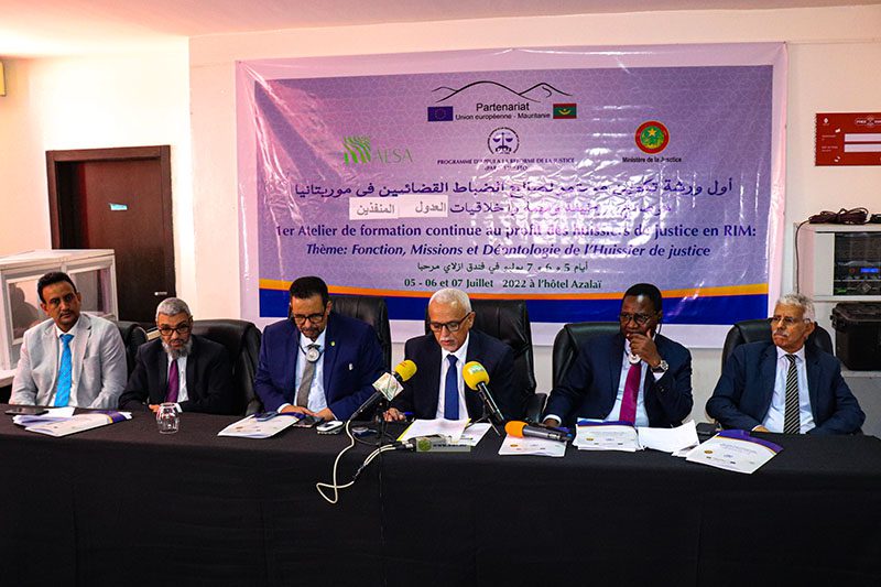 نظمت وزارة العدل بالتعاون مع مشروع اصلاح العدالة ،التابع للصندوق الإنمائي الأوروبي صباح اليوم الثلاثاء في نواكشوط الغربية أول ورشة تكوين مستمر لصالح الضباط القضائيين في موريتانيا تحت عنوان(وظيفة ومهمة وأخلاقيات العدول المنفذين”.