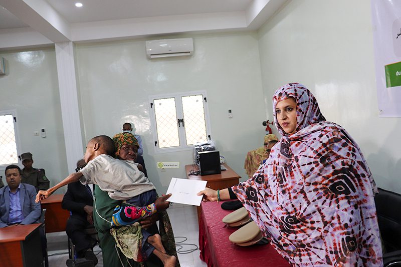 جرى حفل التوزيع بحضور معالي مفوض حقوق الإنسان والعمل الإنساني والعلاقات مع المجتمع المدني، ومدير ديوان والي نواكشوط الجنوبية، وحاكم مقاطعة عرفات، وعمدة بلديتها، ورئيس الاتحادية الموريتانية للجمعيات الوطنية للأشخاص ذوي الإعاقة، وعدد من أطر قطاع العمل الاجتماعي والطفولة والأسرة.