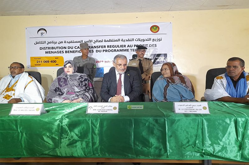 وقال معالي المندوب:” إن هذه التوزيعات النقدية تدخل في إطار برنامج التكافل الاجتماعي المنبثق عن برنامج أولوياتي الموسع لفخامة رئيس الجمهورية السيد محمد ولد الشيخ الغزواني، الذي تم بموجبه رفع عدد الأسر المستفيدة من هذا البرنامج إلى (100) ألف أسرة متعففة، ورفع المبالغ الموزعة من 15ألف أوقية قديمة إلى 22ألف أوقية قديمة”.