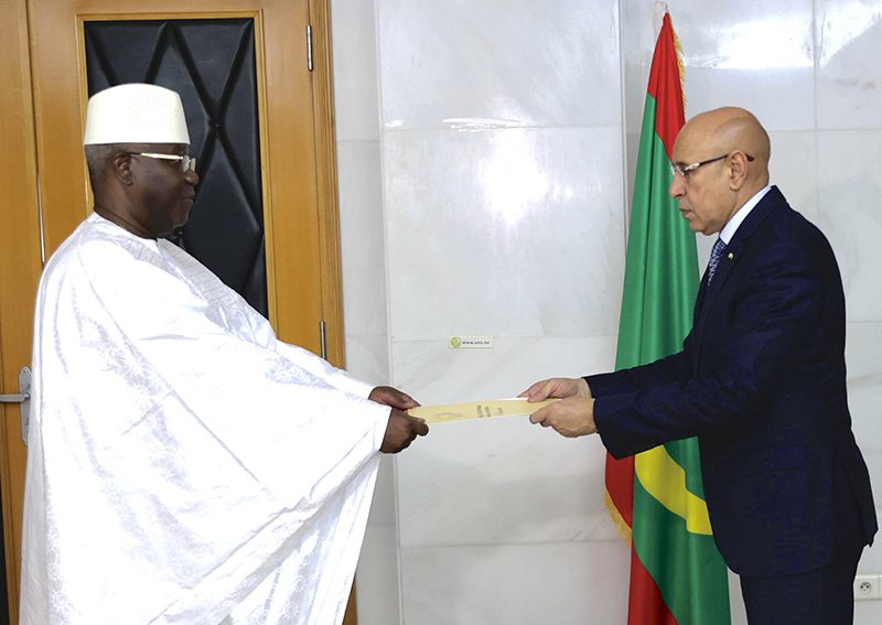 وخص رئيس الجمهورية الدبلوماسي البيساو غيني، بعد تسلم أوراق الاعتماد، بمقابلة حضرها معالي وزير الشؤون الخارجية والتعاون والموريتانيين في الخارج، السيد محمد سالم ولد مرزوك.