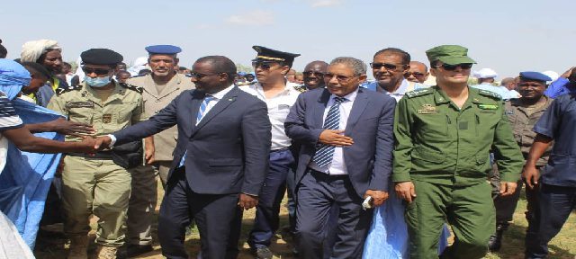 أشرف معالي وزير التنمية الحيوانية السيد محمد ولد اسويدات زوال اليوم الإثنين رفقة والى الحوض الشرقي السيد إسلمو ولد سيدي من قرية اهل أب 2 التابعة لبلدية آكوينبت في مقاطعة النعمة على إطلاق البرنامج الوطني للمياه الرعوية .