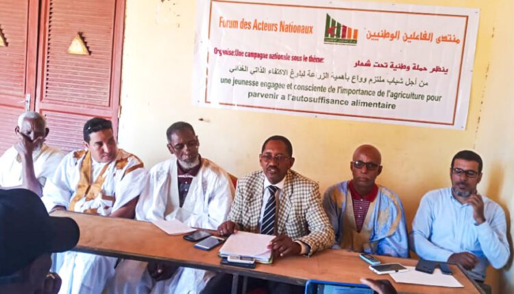 نظم منتدى الفاعلين الوطنيين أمس الخميس بدار الشباب في مدينة لعيون حملة توعية وتحسيس تحت شعار: من أجل شباب ملتزم وواع بأهمية الزراعة في تحقيق الاكتفاء الذاتي في مجال الغذاء.