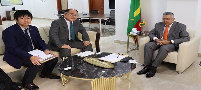 استقبل معالي وزير التحول الرقمي والابتكار وعصرنة الإدارة، السيد الشيخ الكبير ولد مولاي الطاهر، اليوم الجمعة في مكتبه، القائم بالأعمال في السفارة اليابانية في موريتانيا السيد ماساهيرو فجيكاوا، رفقة وفد يضم: السيد أوسامو أونوديرا المدير العام لمكتب الشؤون الدولية والاستراتيجيات العالمية في وزارة الشؤون الداخلية والاتصالات اليابانية، والسيد نيريكي ساتو نائب مدير قسم الاستراتيجيات العالمية، والسيد جيرو نكانو مدير مكتب التقييس في إدارة البحث والتخطيط التنموي.
