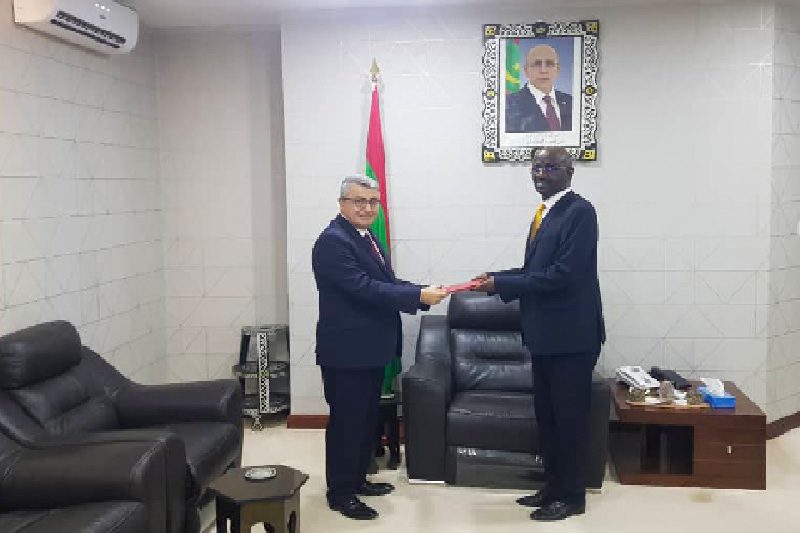 وخلال اللقاء تسلم معاليه من الدبلوماسي التركي نسخة من أوراق اعتماده بصفته سفيرا فوق العادة وكامل السلطة للجمهورية التركية في موريتانيا.