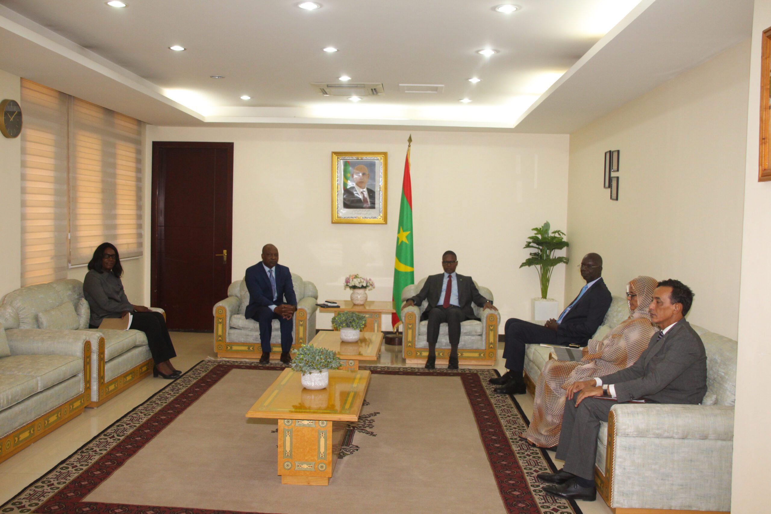 وجرى اللقاء بحضور معالي وزير الشؤون الاقتصادية وترقية القطاعات الإنتاجية السيد أوسمان مامودو كان ومديرة ديوان الوزير الأول السيدة عيشه فال فرجس، ومستشار الوزير الأول المكلف بالشؤون الاقتصادية السيد عبد الرحيم ديدي .