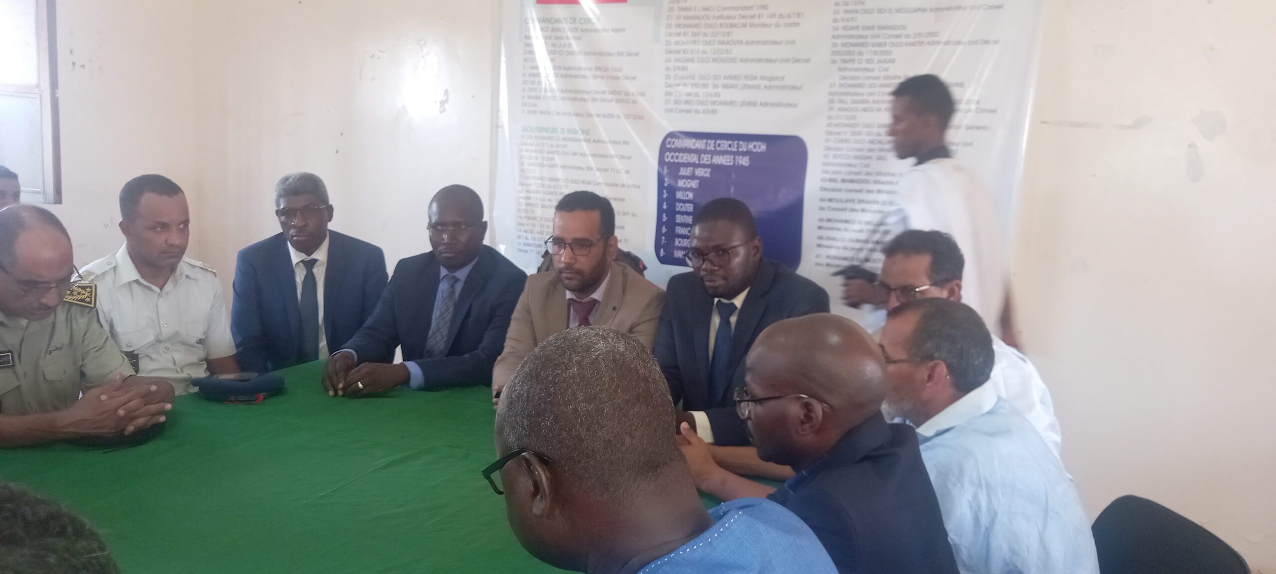 حضر اللقاء حاكم مقاطعة لعيون السيد الشيخ سعيد باكيلي و نائب رئيس جهة الحوض الغربي و عمدة بلدية لعيون.