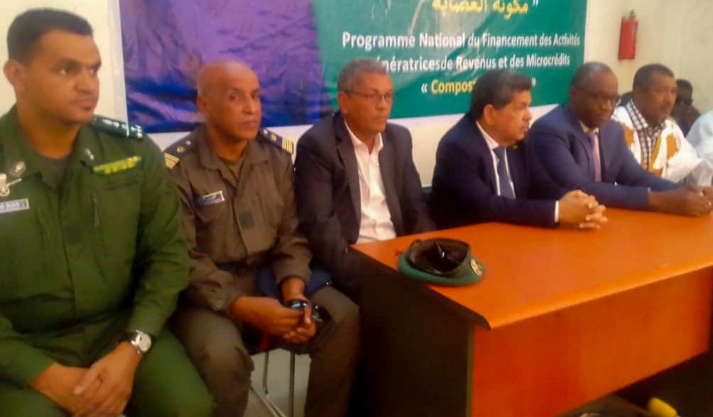 أشرف الامين العام للتضامن الوطني و مكافحة الاقصاء تآزر السيد صمبه ولد سالم رفقة والي لعصابه السيد عبد الرحمن ولد الحسن، اليوم الخميس بدار الشباب في مدينة كيفه على إنطلاق البرنامج الوطني لتمويل الأنشطة المدرة للدخل والقروض الميسرة الخاصة بولاية لعصابه .
