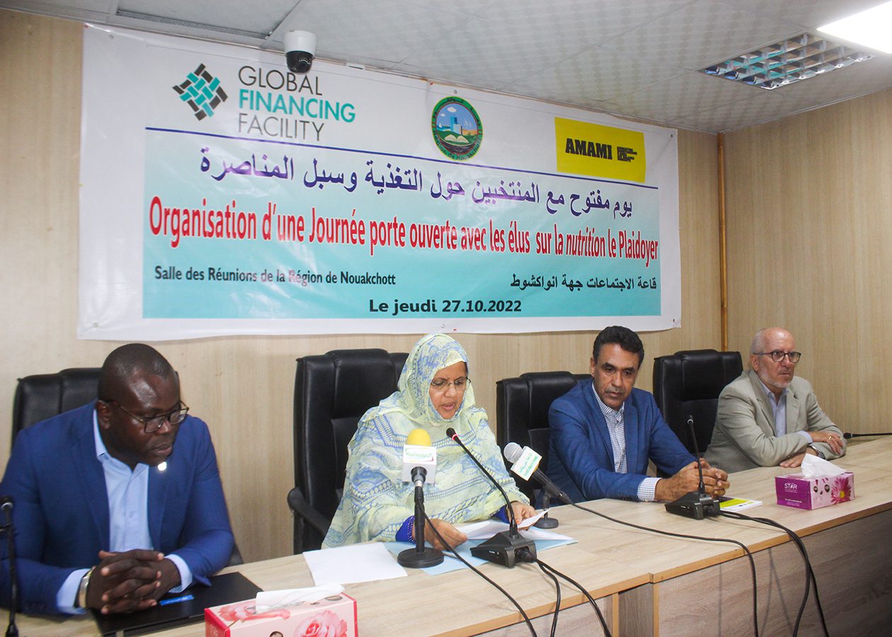 نظمت جهة انواكشوط، بالتعاون مع الجمعية الموريتانية لمساعدة المرضى المحتاجين، ومشروع تسهيلات التمويلات العالمي، اليوم الخميس في انواكشوط يوما مفتوحا مع المنتخبين حول التغذية وسبل المناصرة.