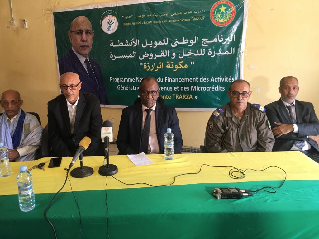 أشرف الأمين العام للمندوبية العامة للتضامن الوطني و مكافحة الاقصاء “تآزر” السيد صمب سالم امبارك، رفقة والي اترارزة المساعد السيد محمدفال ولد محمد محمود اليوم الأحد بقاعة الإجتماعات بالإدارة الجهوية للعمل الاجتماعي والطفولة والأسرة بولاية اترارزة على إطلاق المكونة الخاصة بولاية اترارزة ضمن البرنامج الوطني لتمويل الأنشطة المدرة للدخل والقروض الميسرة.