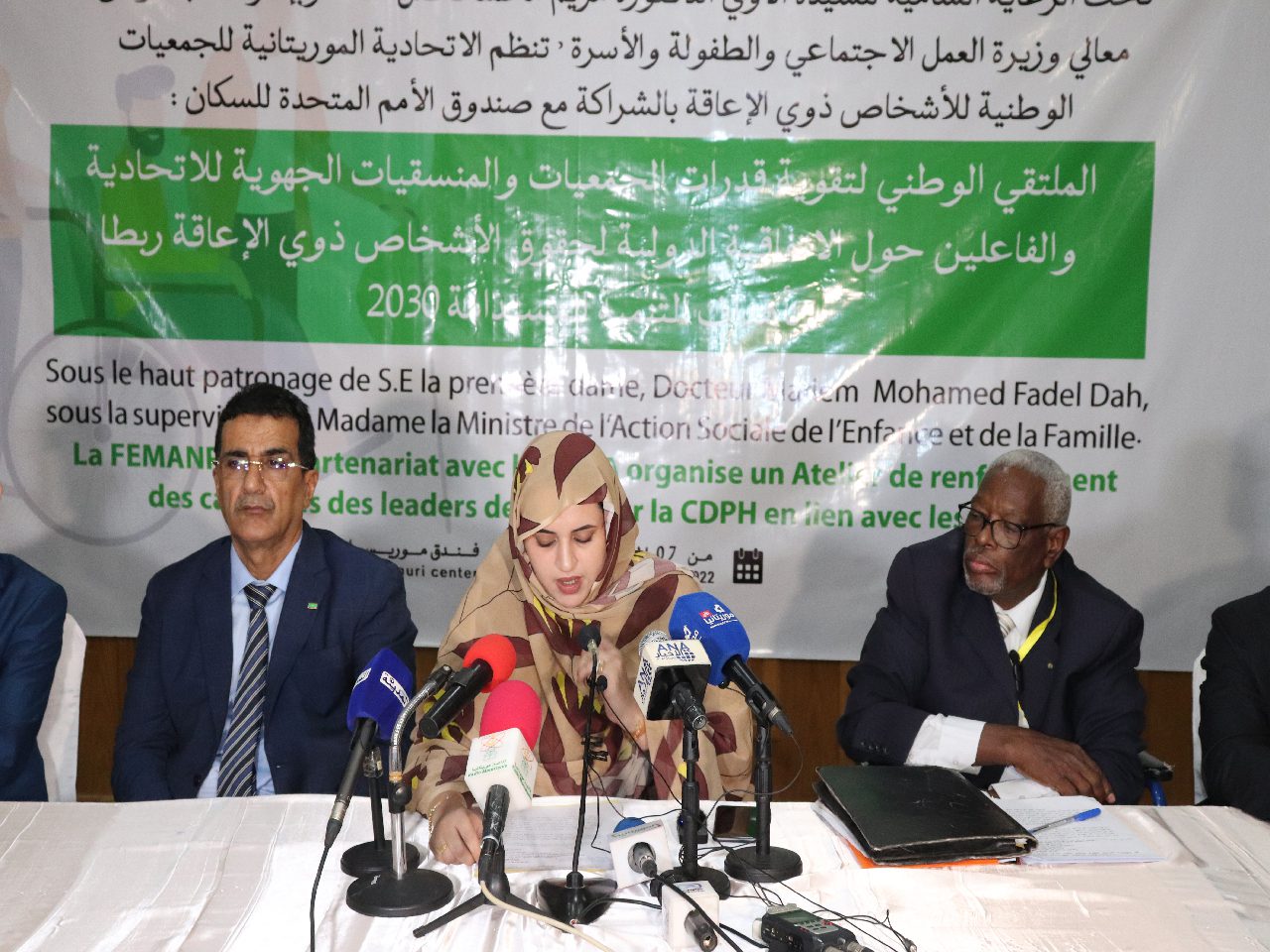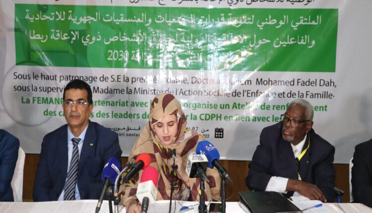 نظمت الاتحادية الموريتانية للجمعيات الوطنية للأشخاص ذوي الاحتياجات الخاصة بالتعاون مع صندوق الامم المتحدة للسكان وتحت الرعاية السامية للسيدة الاولى مريم بنت الداه، اليوم الاثنين بنواكشوط، ملتقى وطني لتقوية قدرات ‏الجمعيات الوطنية للأشخاص ذوي الاحتياجات الخاصة والمنسقيات الجهوية للاتحادية والفاعلين حول الاتفاقية الدولية لحقوق الاشخاص ذوي الاحتياجات الخاصة ربطا بأهداف التنمية المستدامة 2030.