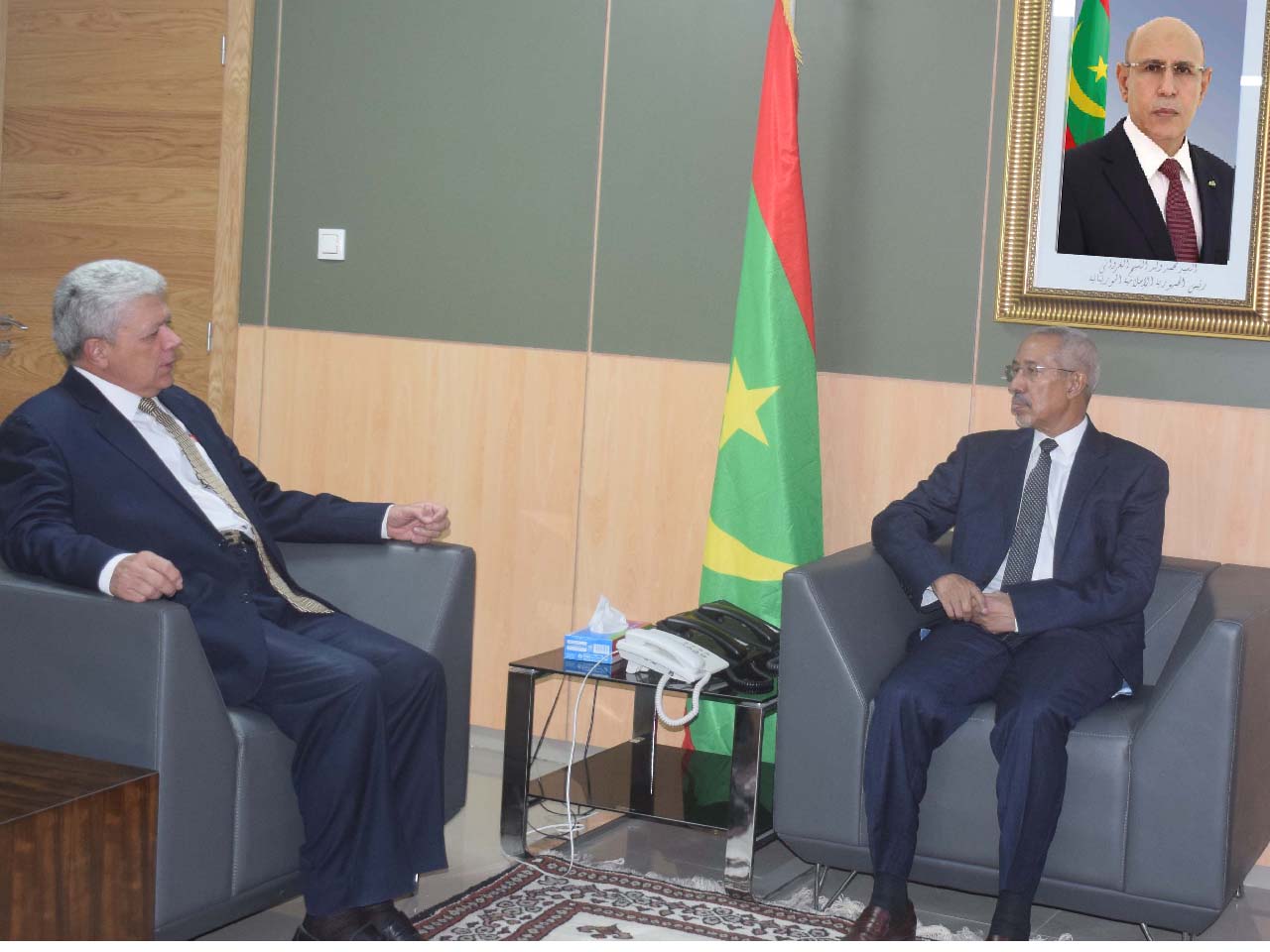 أجرى معالي وزير الدفاع الوطني السيد حننه ولد سيدي، صباح اليوم الخميس في مكتبه بمقر الوزارة في نواكشوط، مباحثات مع سعادة السيد ليوناردو كرفيهلو مونتيرس، سفير جمهورية البرازيل الفيدرالية المعتمد لدى بلادنا.