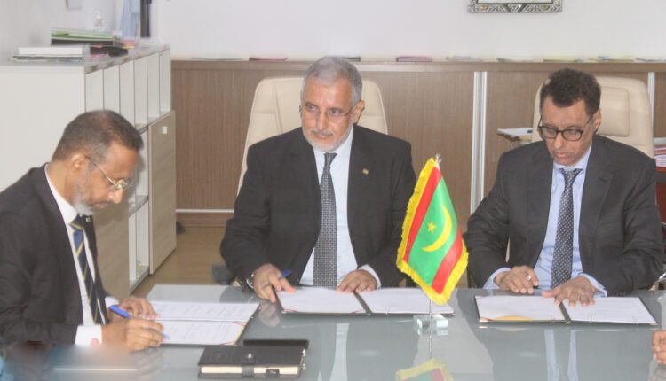 وقع معالي وزير البترول والمعادن والطاقة، السيد عبد السلام محمد صالح، اليوم الجمعة في نواكشوط، مع معالي المندوب العام للتضامن الوطني ومكافحة الإقصاء (تآزر)، السيد محمد عالي ولد سيد محمد، والمدير العام للشركة الوطنية للكهرباء، السيد الشيخ عبد الله ولد بد، على اتفاقية لتفويض إدارة أشغال توصيل تسع قرى ريفية بالشبكة الكهربائية.