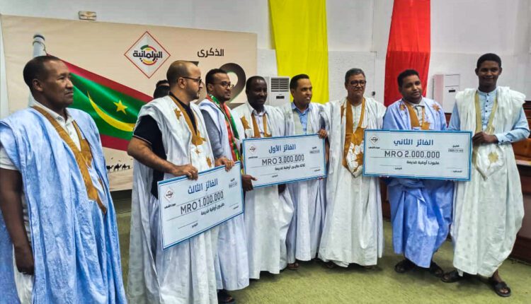 وأعلن خلال الأمسية عن الفائزين الأوائل بجوائز المسابقة، حيث كانت الجائزة الأولى والمتمثلة في 3 ملايين أوقية من نصيب الأديبين سيد محمد ولد بنين ومحمدن ولد إسلمُ بالتناصف، فيما حصل على الجائزة الثانية والبالغ قدرها مليونا أوقية بالتناصف الأديبان أحمد ولد اواه، وعلاء الدين ولد مولاي اعلي، وفاز بالجائزة الثالثة والبالغ قدرها مليون أوقية الأديب منن ولد أبنو.