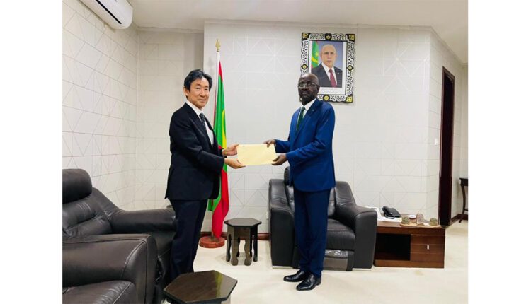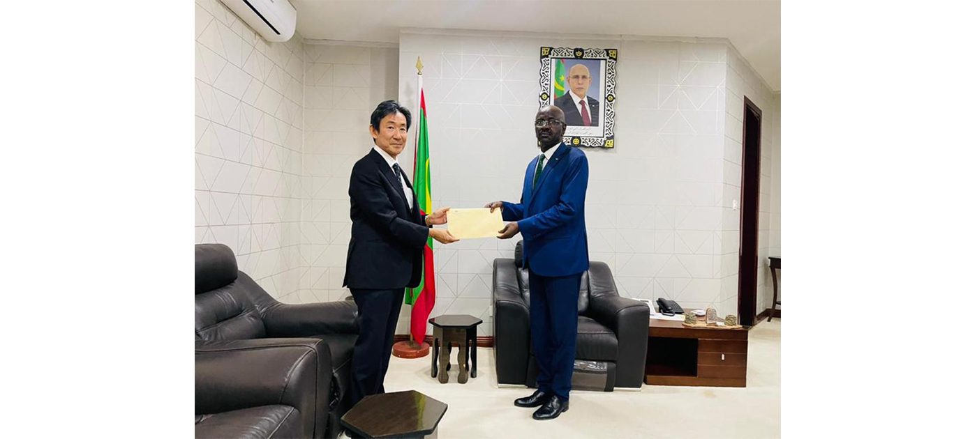 وخلال اللقاء تسلم معاليه، من الدبلوماسي الياباني، نسخة من أوراق اعتماده بصفته سفيرا فوق العادة وكامل السلطة لامبراطورية اليابان لدى موريتانيا.