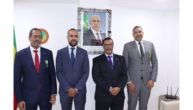 وشح معالي وزير التحول الرقمي والابتكار وعصرنة الإدارة السيد المختار أحمد اليدالي باسم فخامة رئيس الجمهورية اليوم الإثنين في انواكشوط بوسام الامتنان الوطني. السيدين سيد محمد عباد مفتش عام وعبد الله احمد كلي الشيخ سيديا مدير المصادر البشرية،