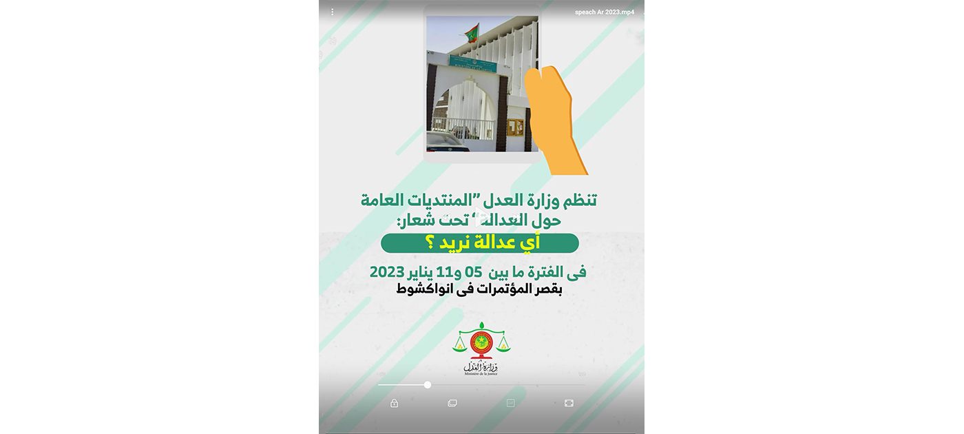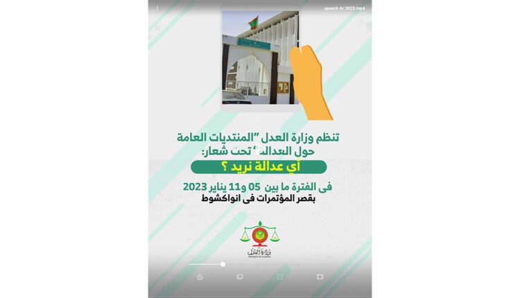 تنطلق يوم غد في انواكشوط تحت الرعاية السامية لفخامة رئيس الجمهورية، السيد محمد ولد الشيخ الغزواني، المنتديات العامة حول العدالة تحت شعار: “أي عدالة نريد؟”.