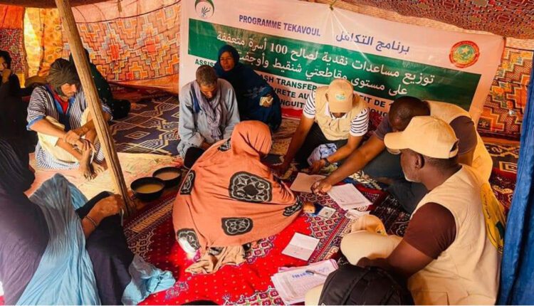 قامت المندوبية العامة للتضامن الوطني ومكافحة الإقصاء (تآزر)، بتقديم مساعدات مالية لصالح 100 أسرة متعففة تقطن بمناطق نائية في مقاطعتي شنقيط وأوجفت.